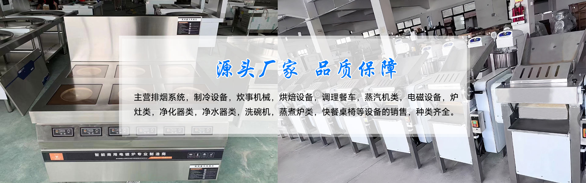 公司主營(yíng)排煙系統(tǒng),制冷設(shè)備,炊事機(jī)械,烘焙設(shè)備,調(diào)理餐車,蒸汽機(jī)類,電磁設(shè)備,爐灶類,凈化器類,凈水器類,洗碗機(jī),蒸煮爐類,快餐桌椅等設(shè)備的銷售,種類齊全。